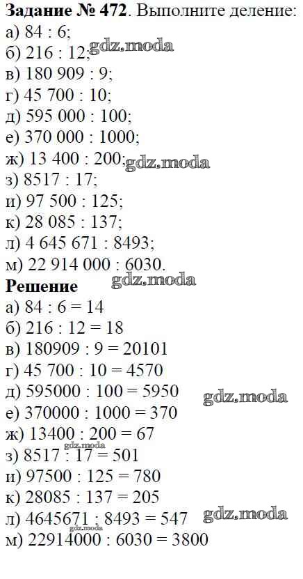 ОТВЕТ на задание № 472 Учебник по Математике 5 класс Виленкин