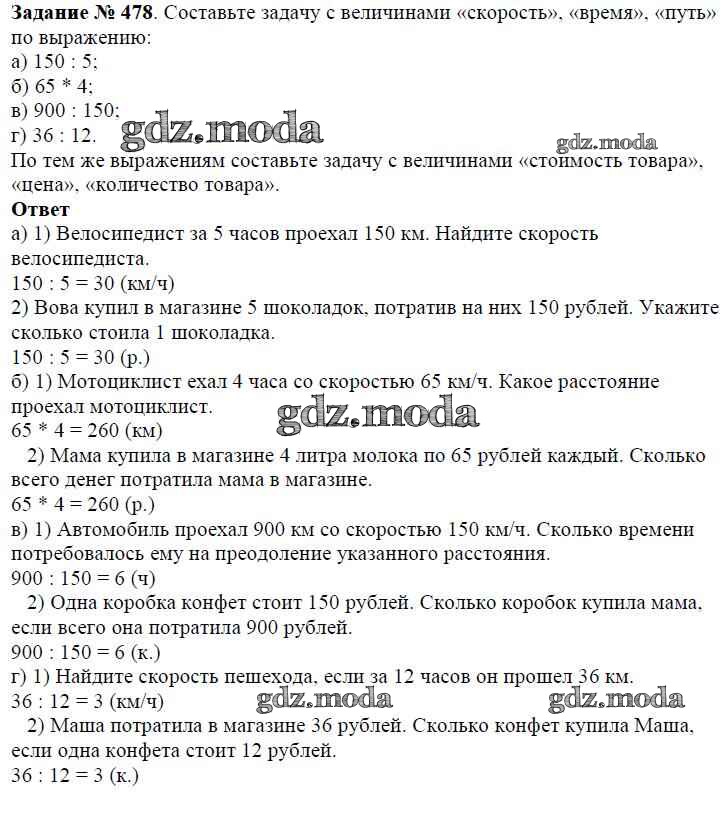 ОТВЕТ на задание № 478 Учебник по Математике 5 класс Виленкин