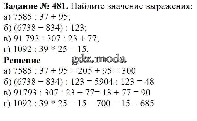 ОТВЕТ на задание № 481 Учебник по Математике 5 класс Виленкин