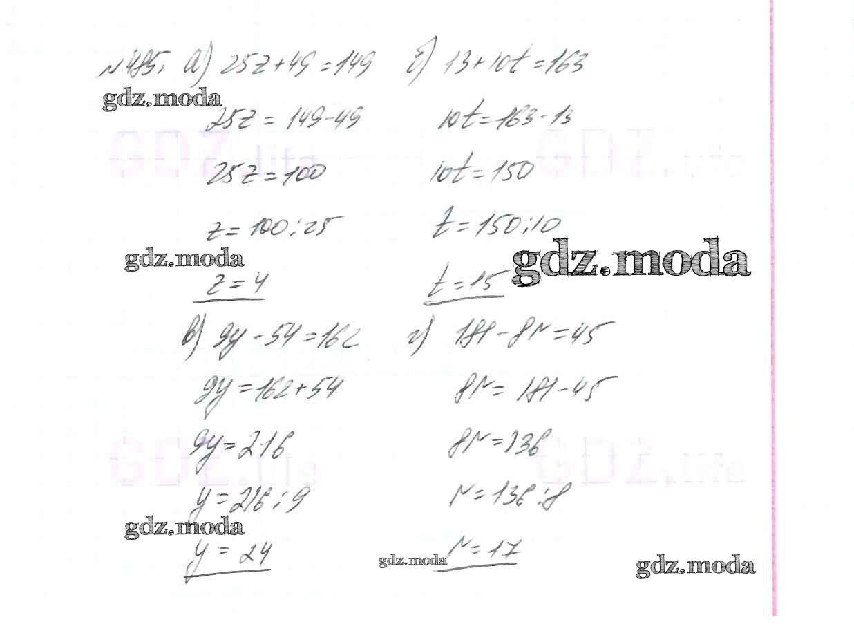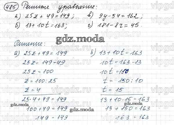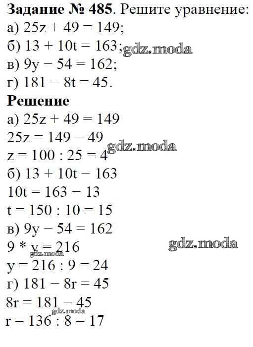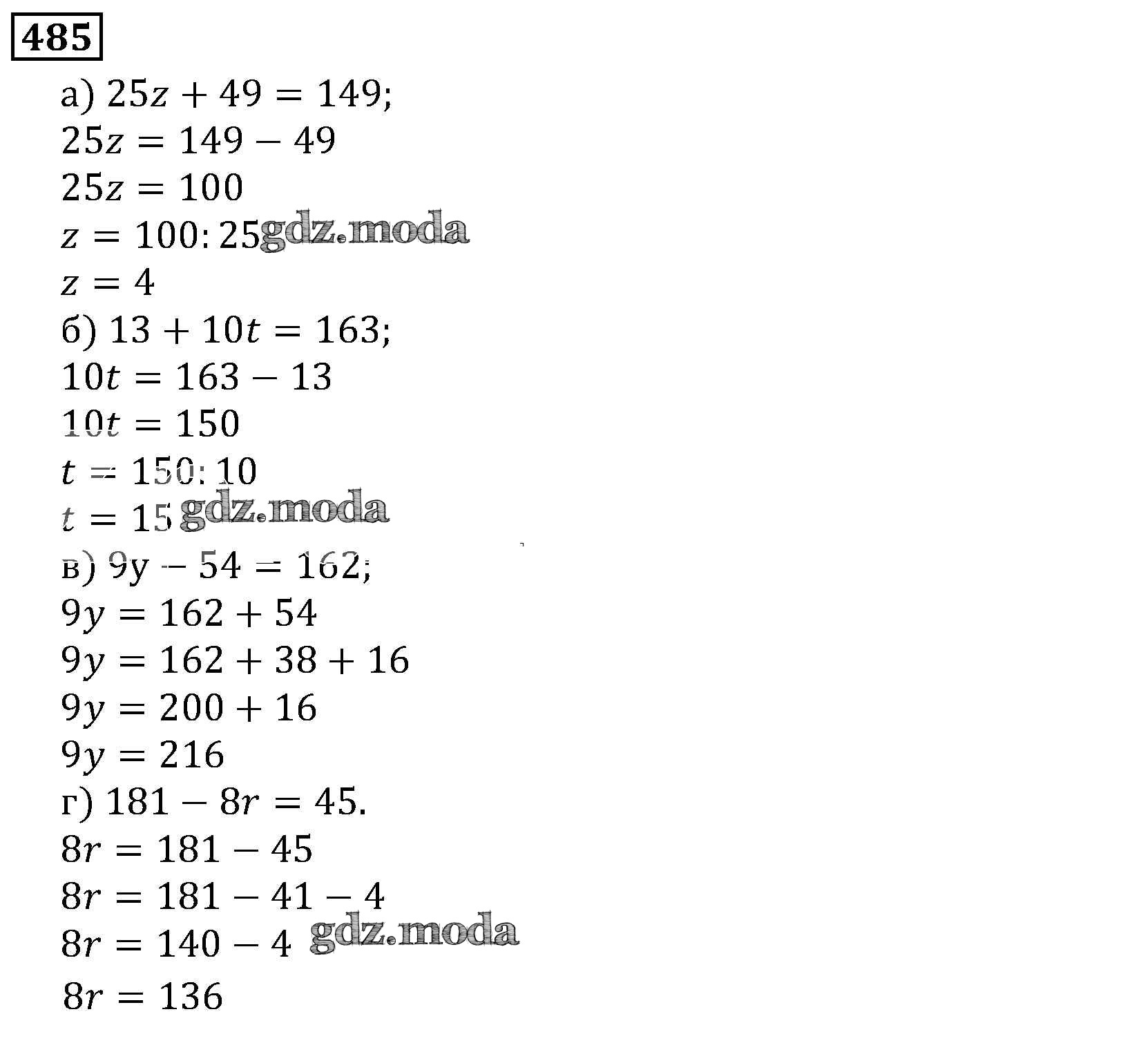 ОТВЕТ на задание № 485 Учебник по Математике 5 класс Виленкин