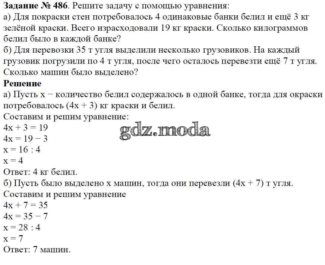 ОТВЕТ на задание № 486 Учебник по Математике 5 класс Виленкин