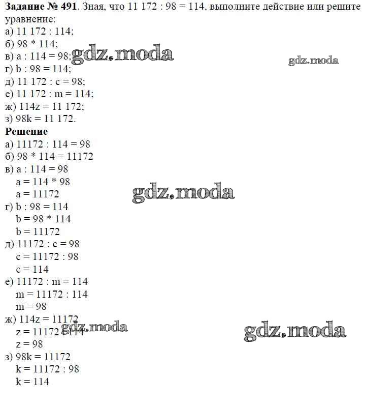 ОТВЕТ на задание № 491 Учебник по Математике 5 класс Виленкин