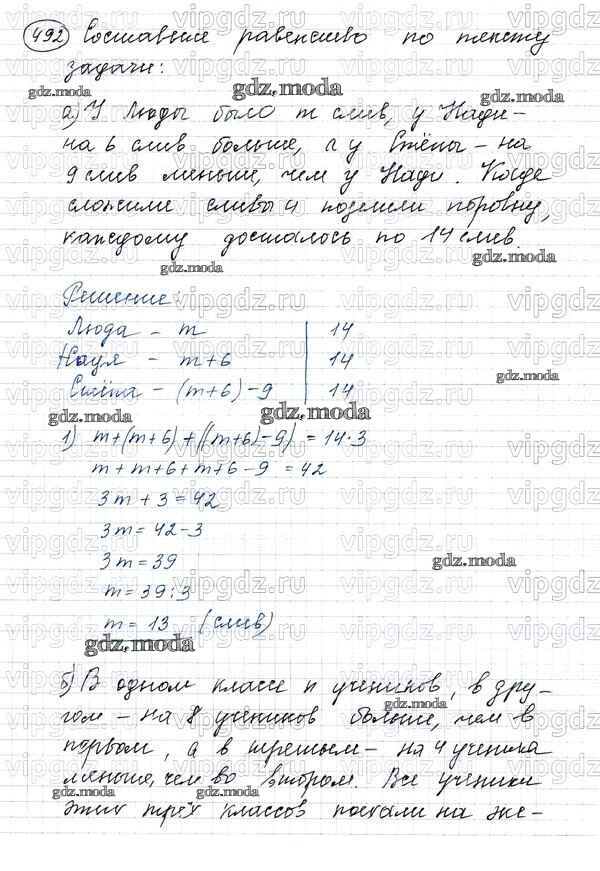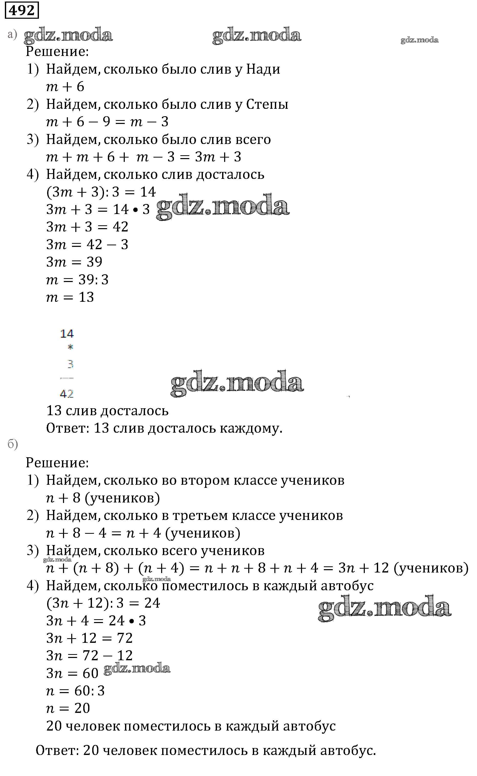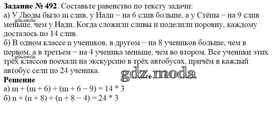 ОТВЕТ на задание № 492 Учебник по Математике 5 класс Виленкин