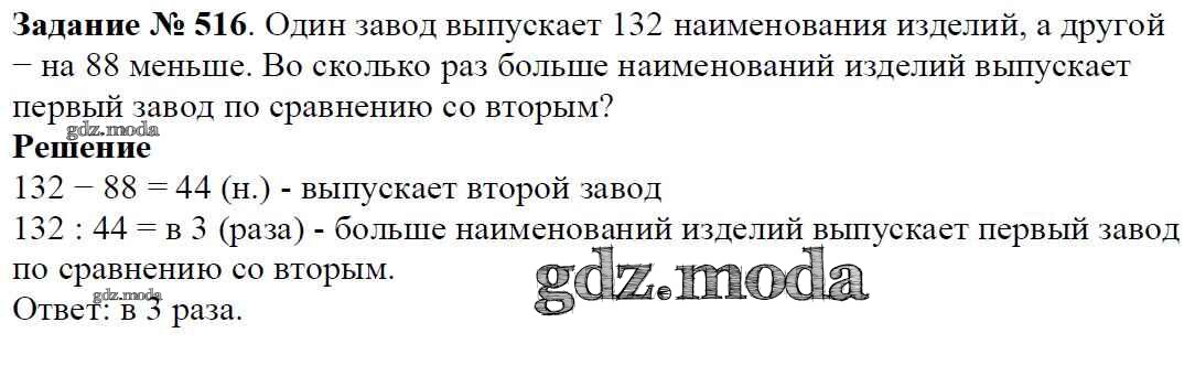 ОТВЕТ на задание № 516 Учебник по Математике 5 класс Виленкин