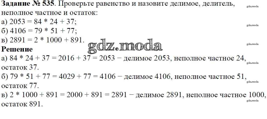 ОТВЕТ на задание № 535 Учебник по Математике 5 класс Виленкин