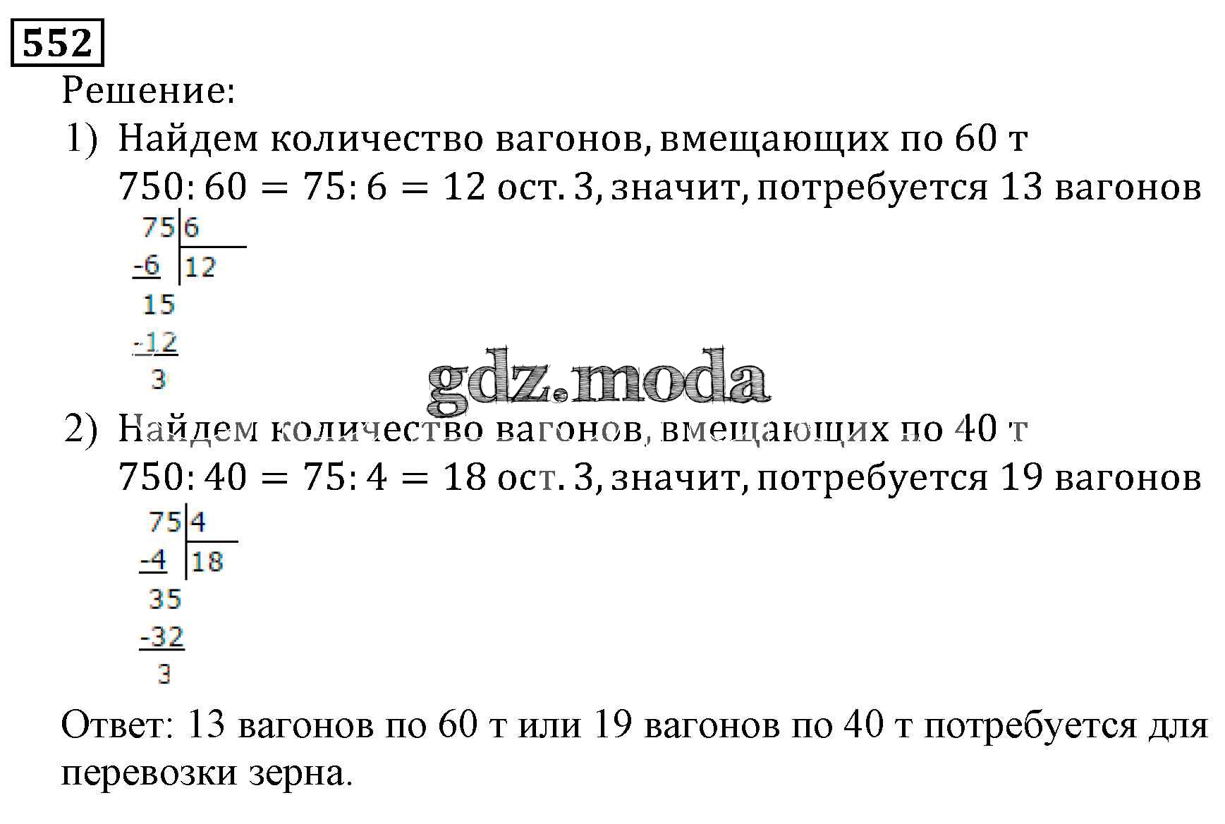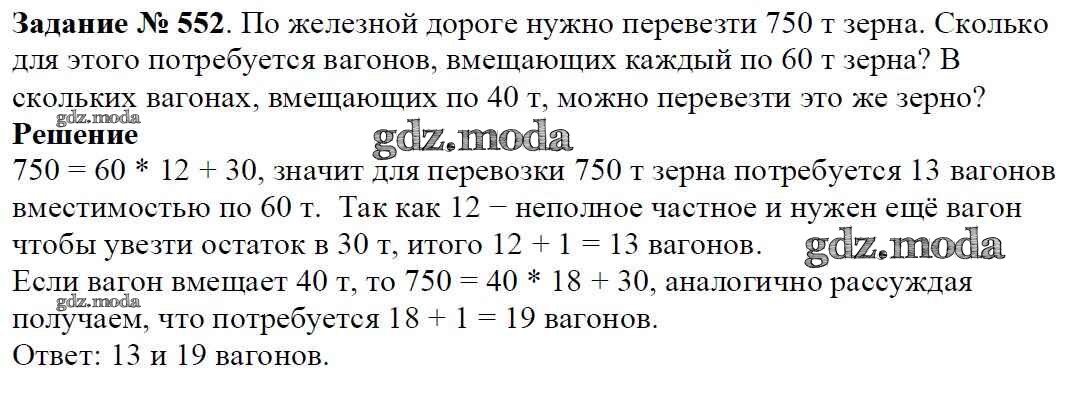ОТВЕТ на задание № 552 Учебник по Математике 5 класс Виленкин