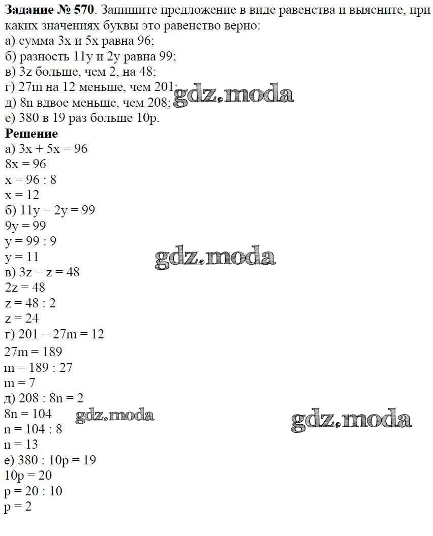 ОТВЕТ на задание № 570 Учебник по Математике 5 класс Виленкин