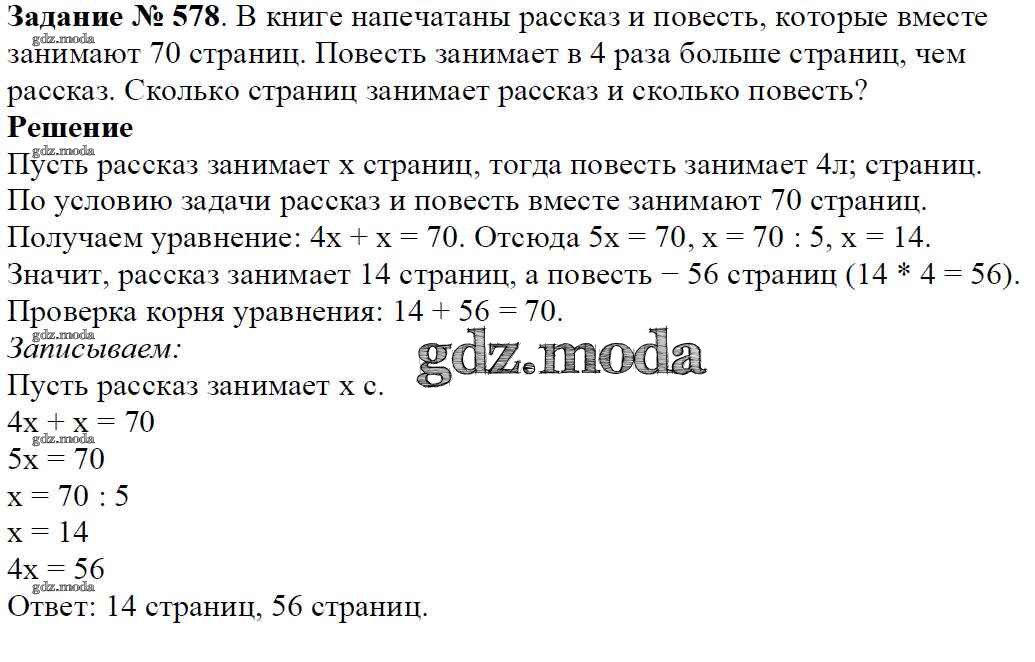 ОТВЕТ на задание № 578 Учебник по Математике 5 класс Виленкин