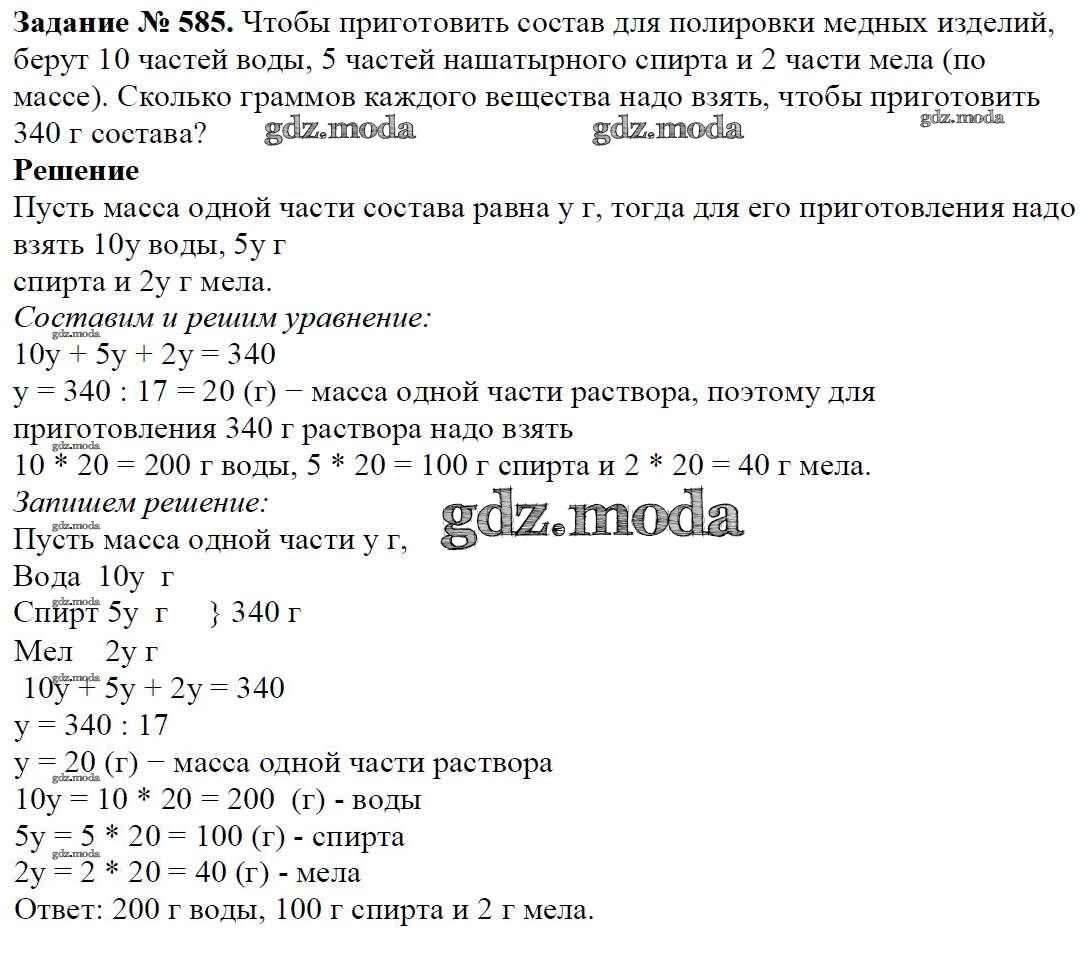 ОТВЕТ на задание № 585 Учебник по Математике 5 класс Виленкин