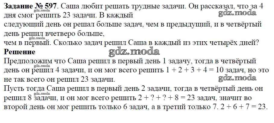 ОТВЕТ на задание № 597 Учебник по Математике 5 класс Виленкин