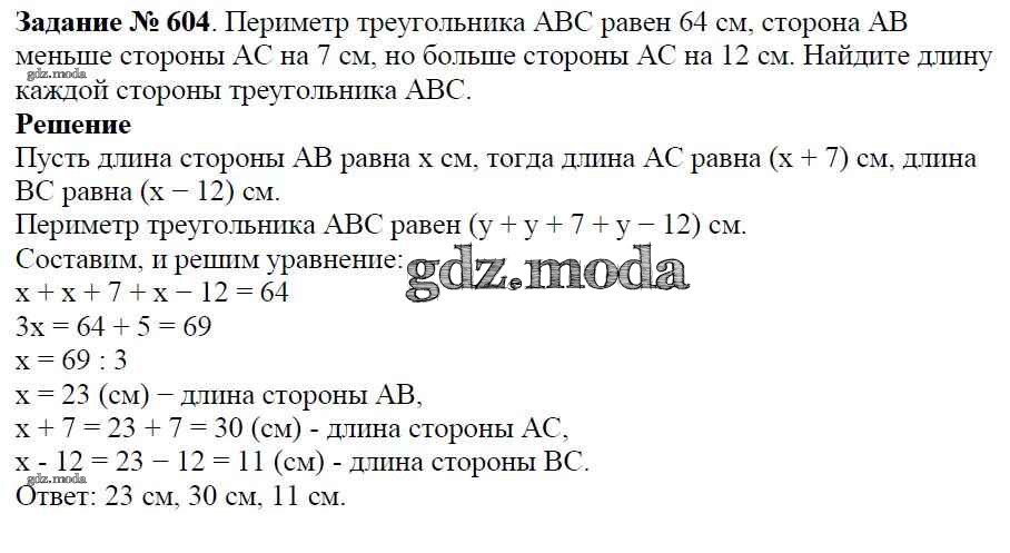 ОТВЕТ на задание № 604 Учебник по Математике 5 класс Виленкин