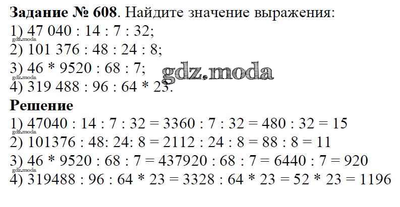 ОТВЕТ на задание № 608 Учебник по Математике 5 класс Виленкин