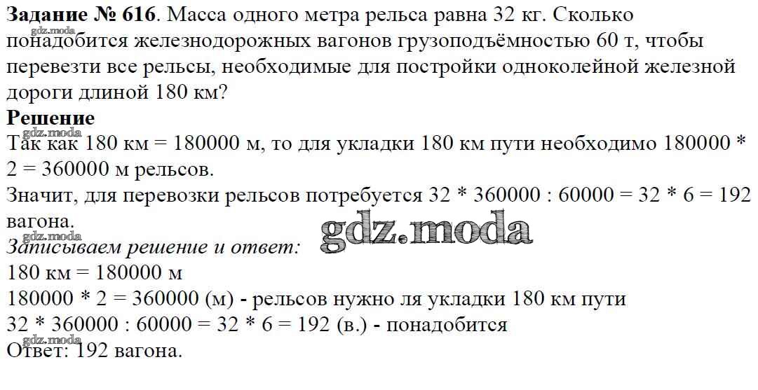 ОТВЕТ на задание № 616 Учебник по Математике 5 класс Виленкин