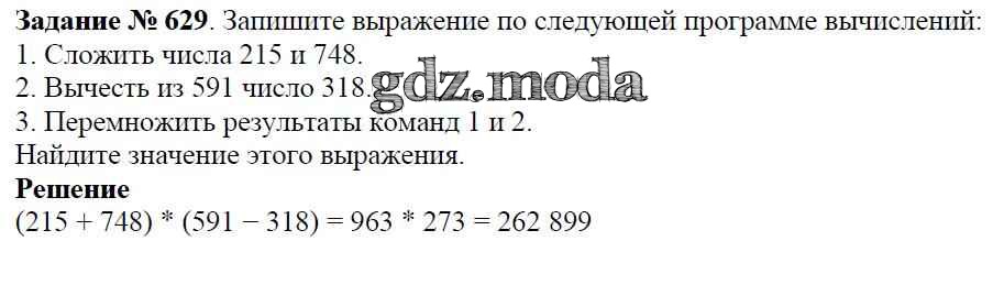 ОТВЕТ на задание № 629 Учебник по Математике 5 класс Виленкин