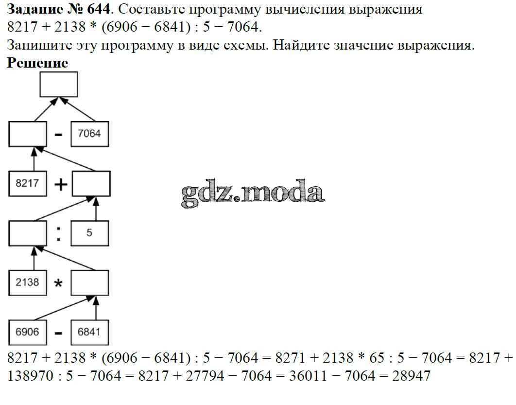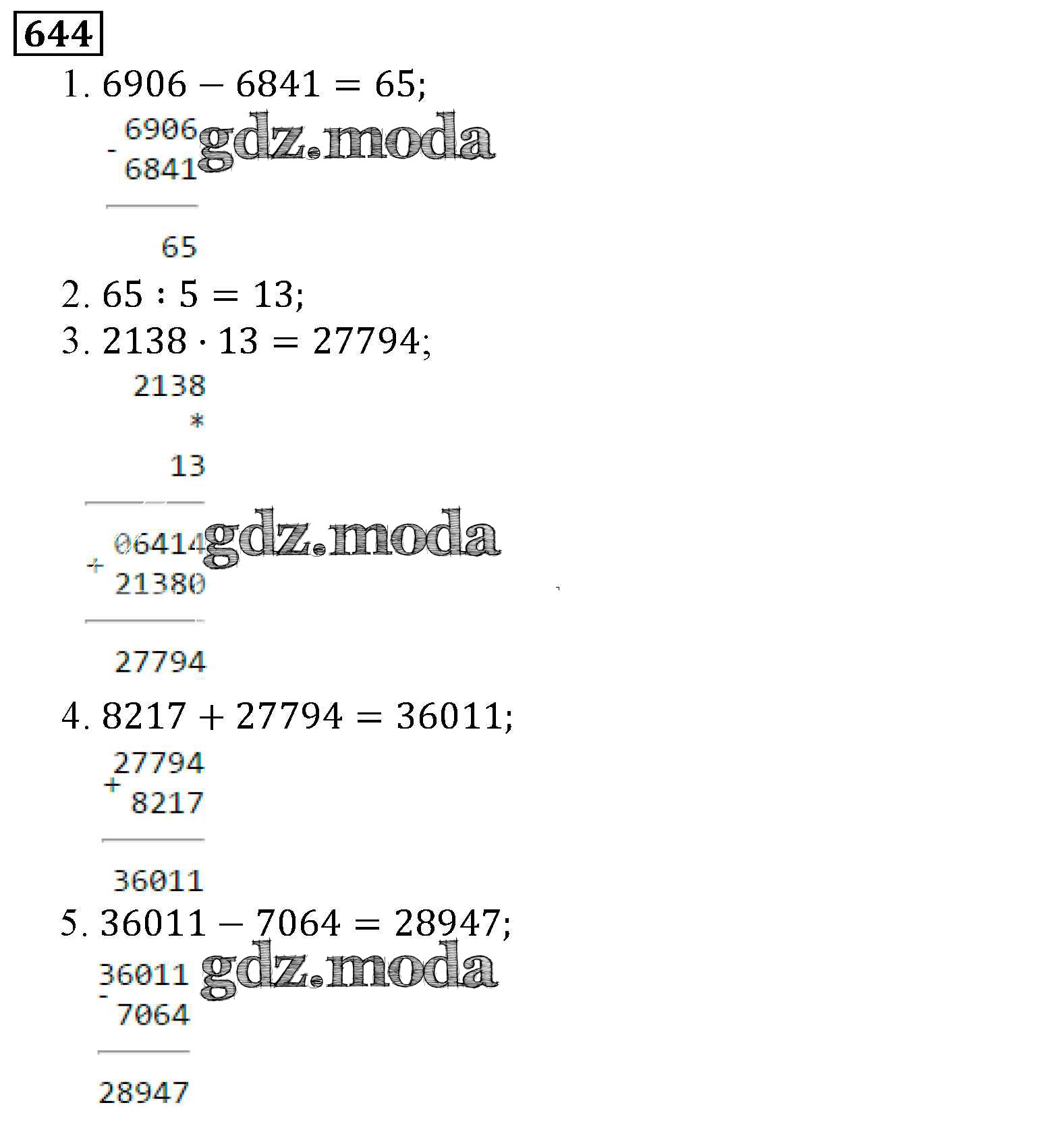 ОТВЕТ на задание № 644 Учебник по Математике 5 класс Виленкин