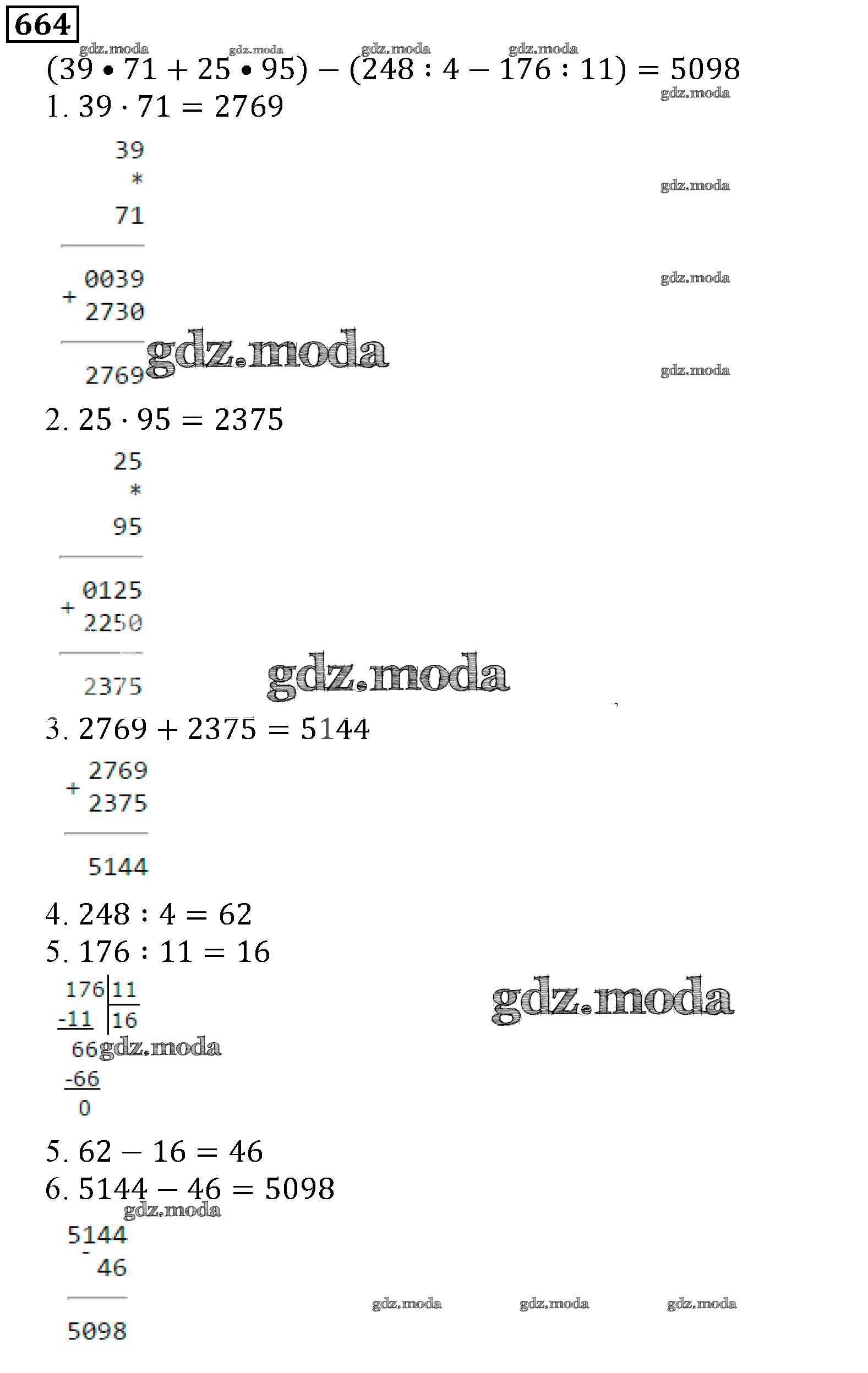 ОТВЕТ на задание № 664 Учебник по Математике 5 класс Виленкин