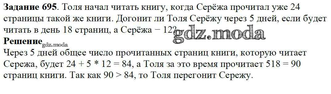 ОТВЕТ на задание № 695 Учебник по Математике 5 класс Виленкин