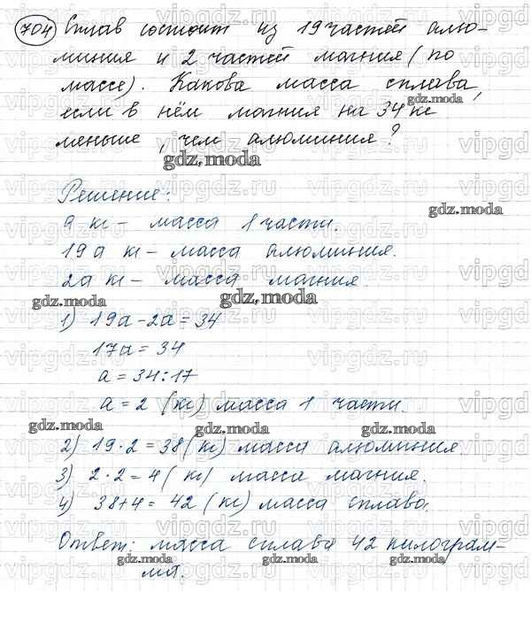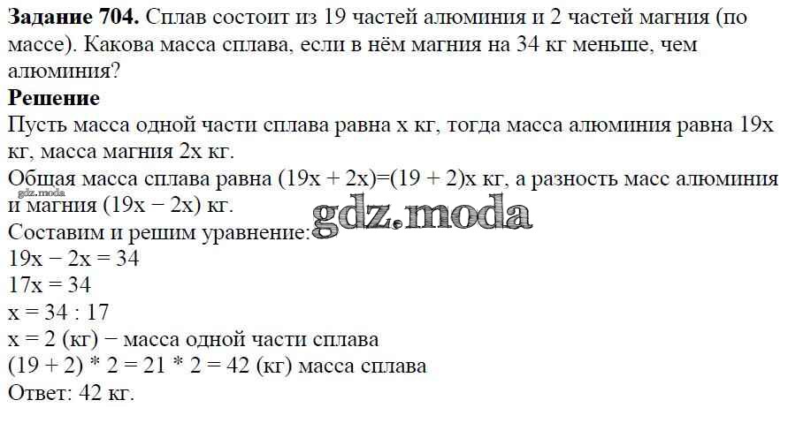 ОТВЕТ на задание № 704 Учебник по Математике 5 класс Виленкин