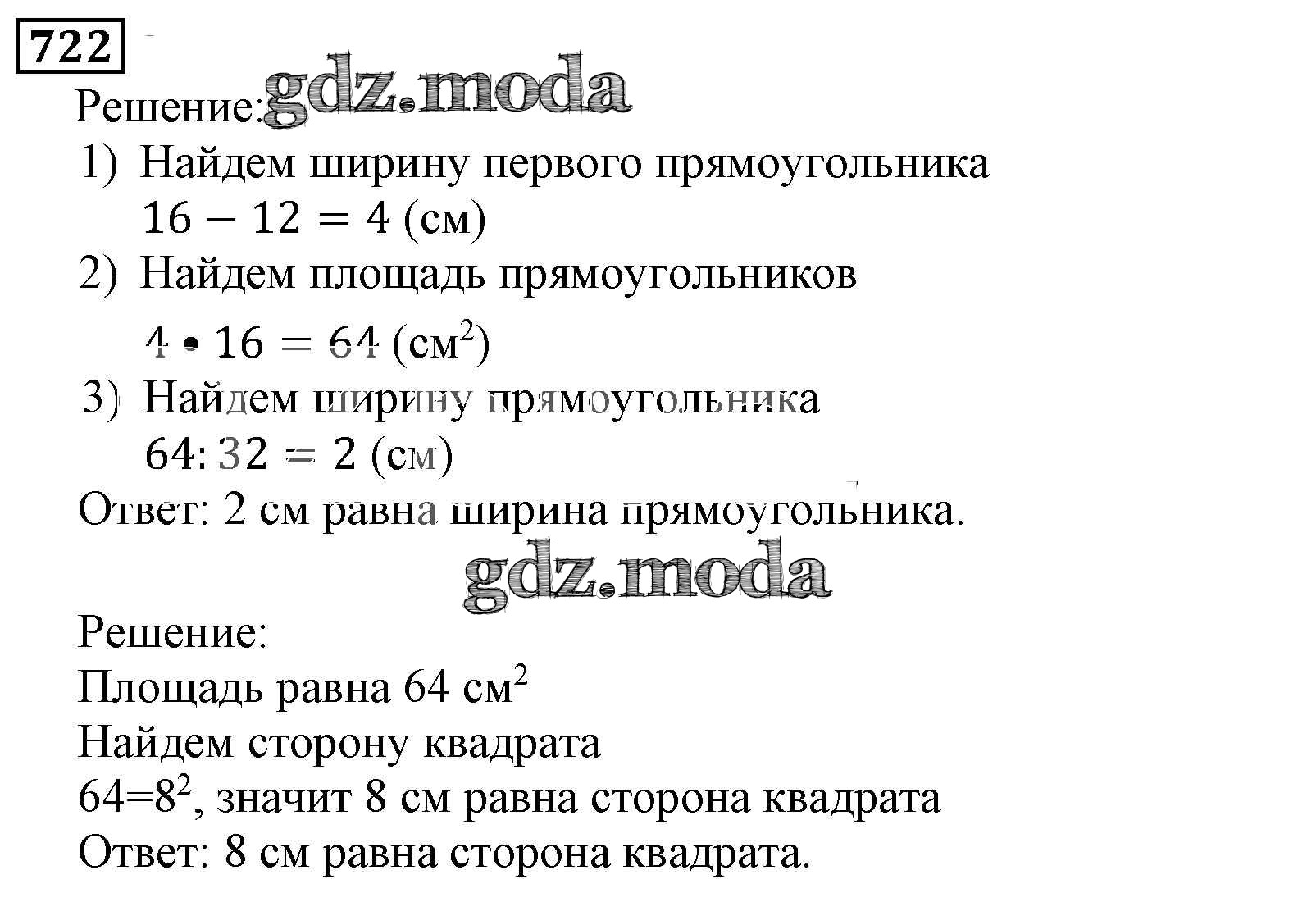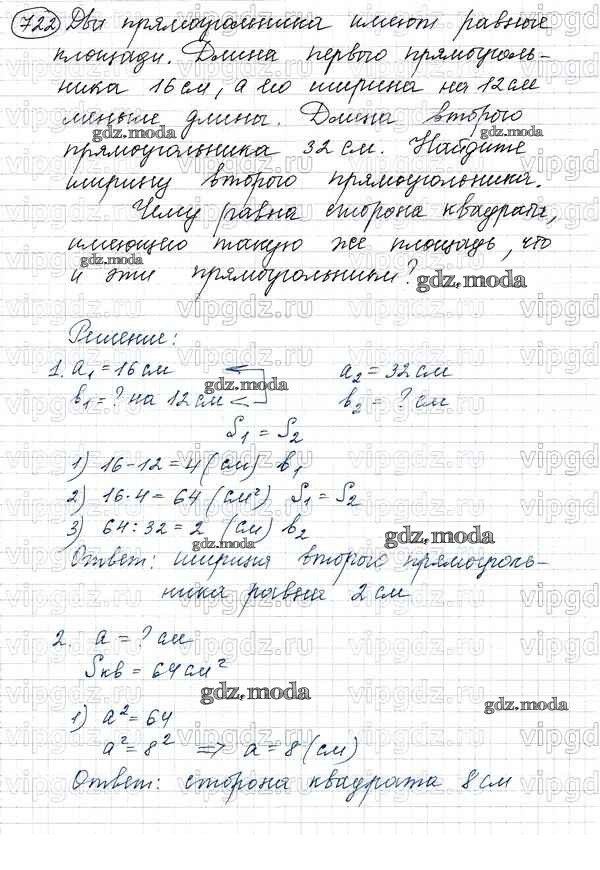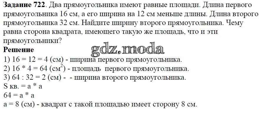 ОТВЕТ на задание № 722 Учебник по Математике 5 класс Виленкин