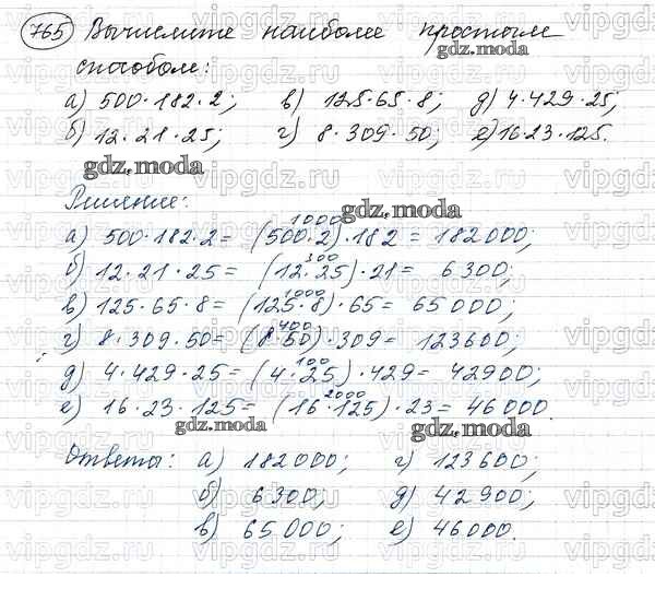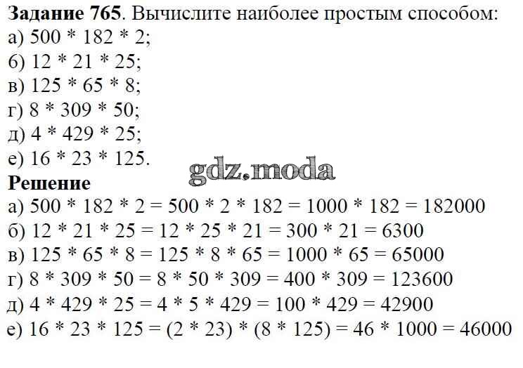 ОТВЕТ на задание № 765 Учебник по Математике 5 класс Виленкин
