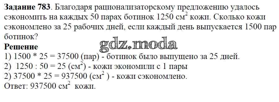 ОТВЕТ на задание № 783 Учебник по Математике 5 класс Виленкин