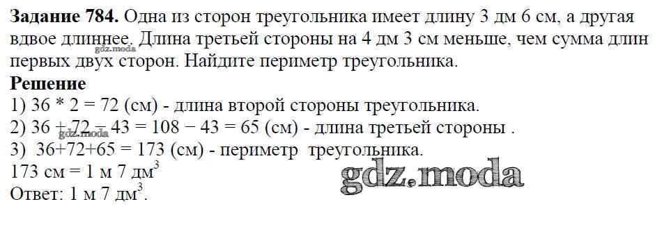 ОТВЕТ на задание № 784 Учебник по Математике 5 класс Виленкин