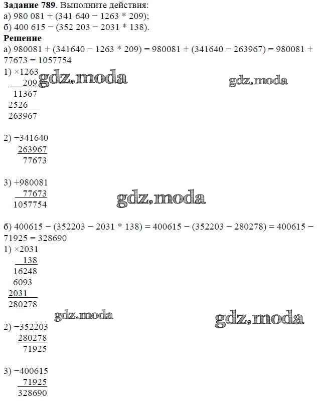 ОТВЕТ на задание № 789 Учебник по Математике 5 класс Виленкин