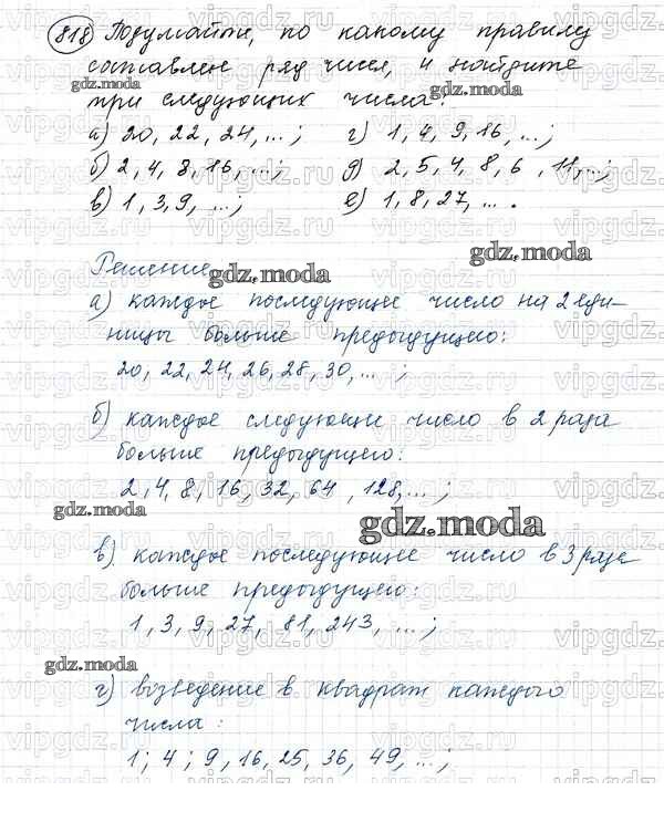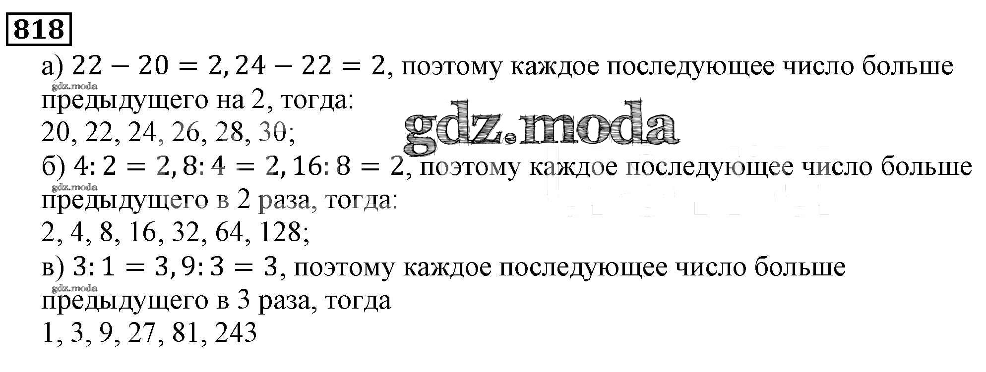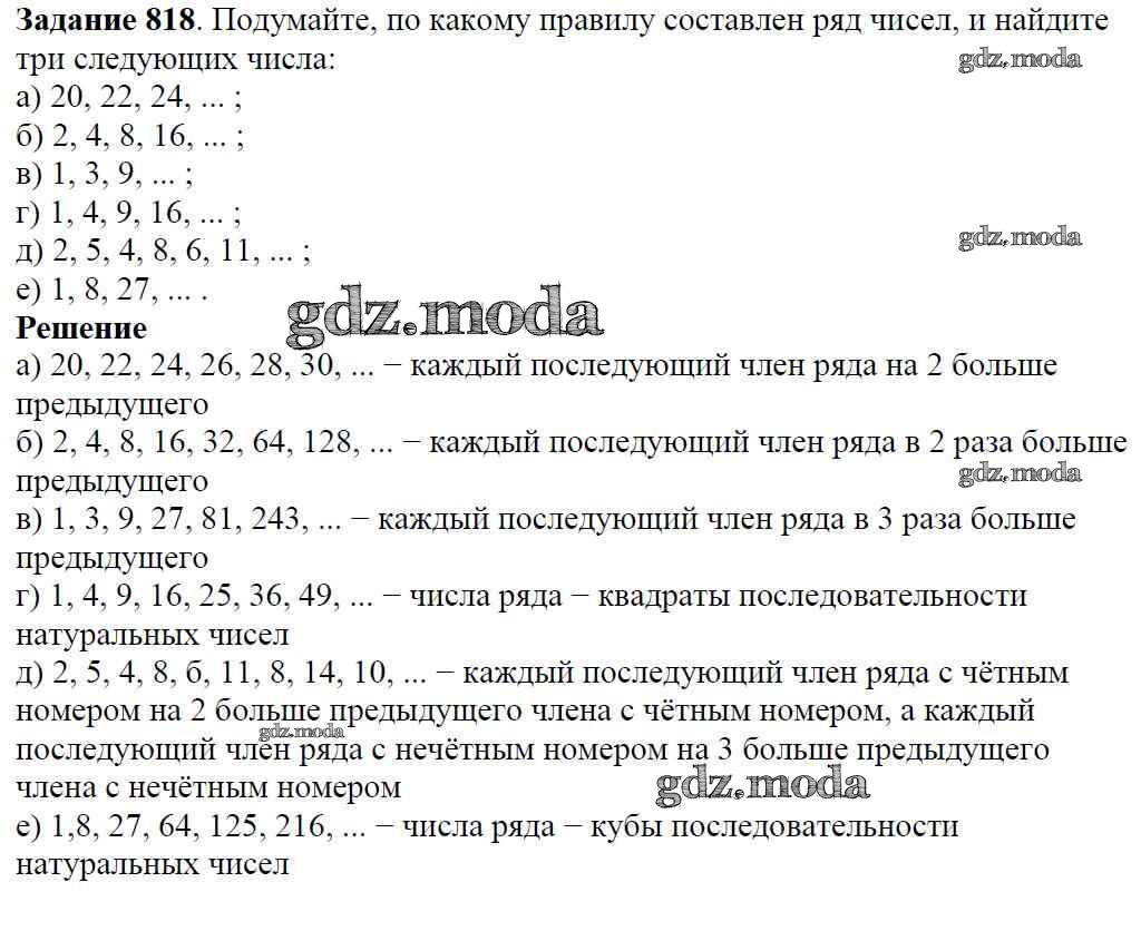ОТВЕТ на задание № 818 Учебник по Математике 5 класс Виленкин