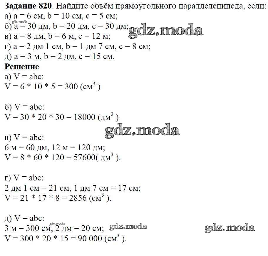 ОТВЕТ на задание № 820 Учебник по Математике 5 класс Виленкин