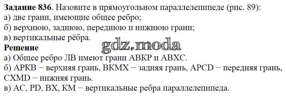 ОТВЕТ на задание № 836 Учебник по Математике 5 класс Виленкин