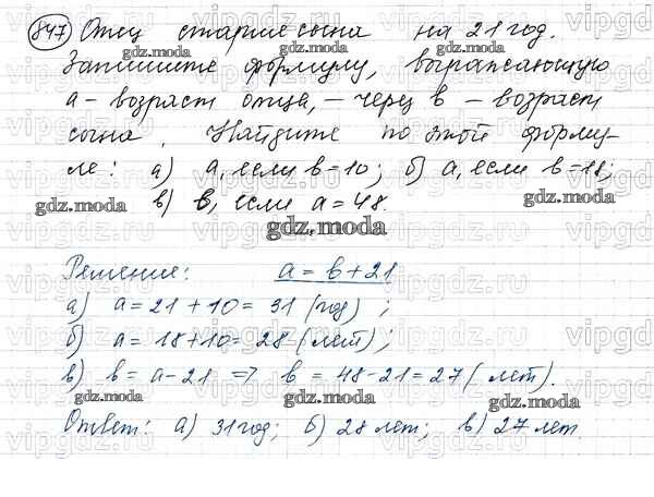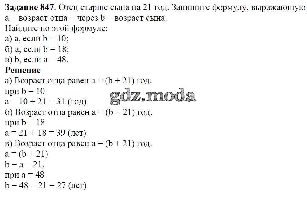 ОТВЕТ на задание № 847 Учебник по Математике 5 класс Виленкин