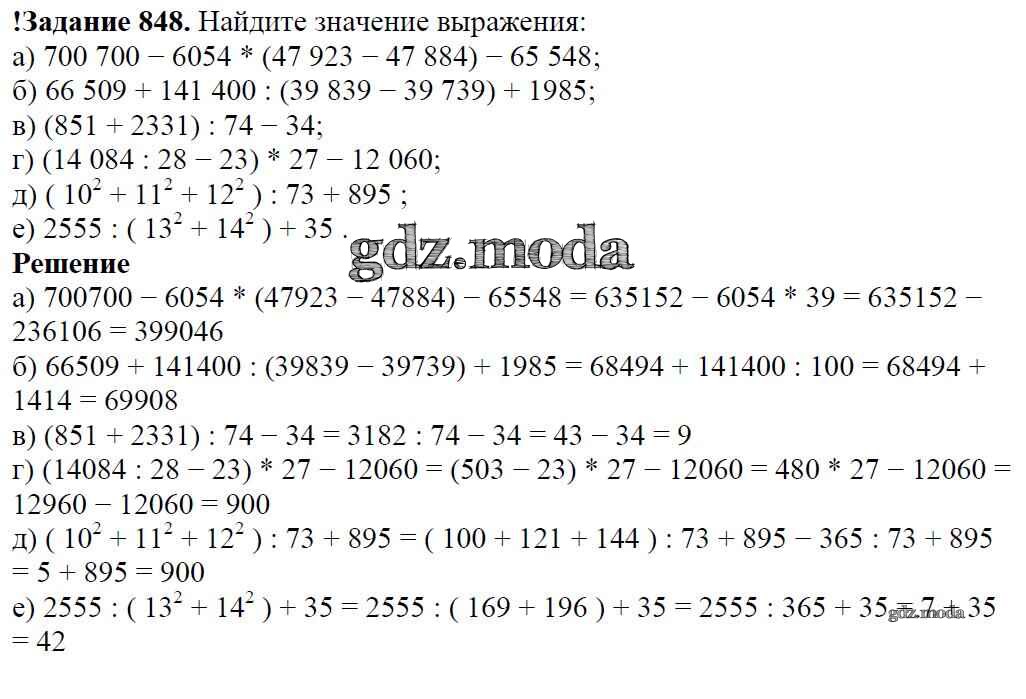ОТВЕТ на задание № 848 Учебник по Математике 5 класс Виленкин