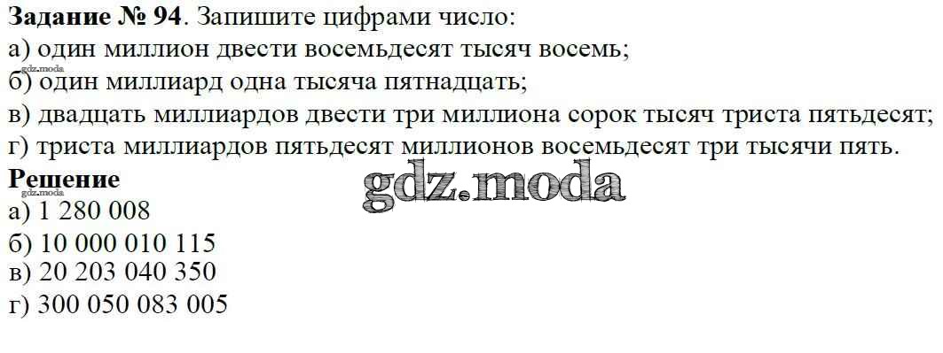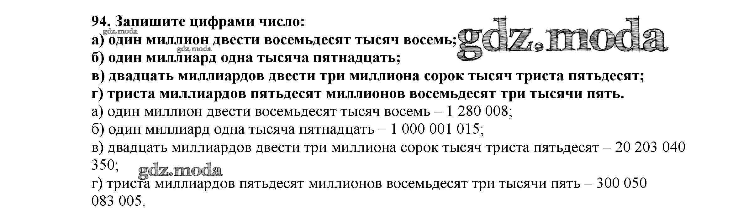 ОТВЕТ на задание № 94 Учебник по Математике 5 класс Виленкин
