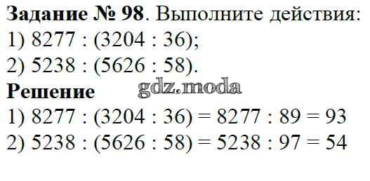 ОТВЕТ на задание № 98 Учебник по Математике 5 класс Виленкин
