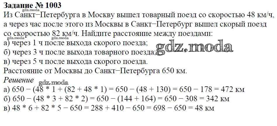 ОТВЕТ на задание № 1003 Учебник по Математике 5 класс Виленкин