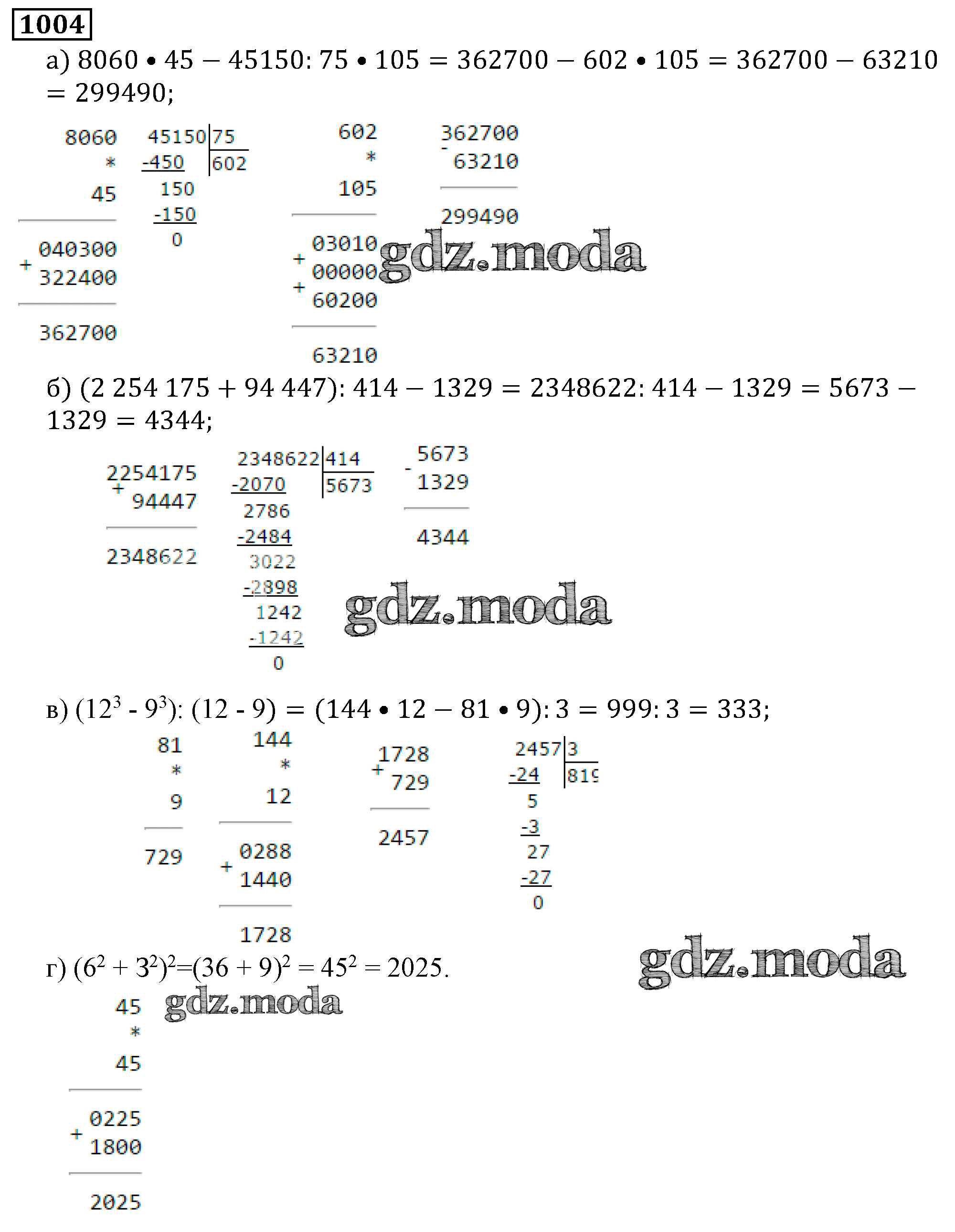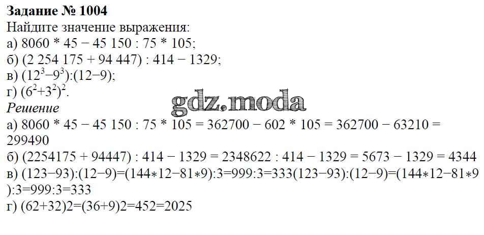 ОТВЕТ на задание № 1004 Учебник по Математике 5 класс Виленкин