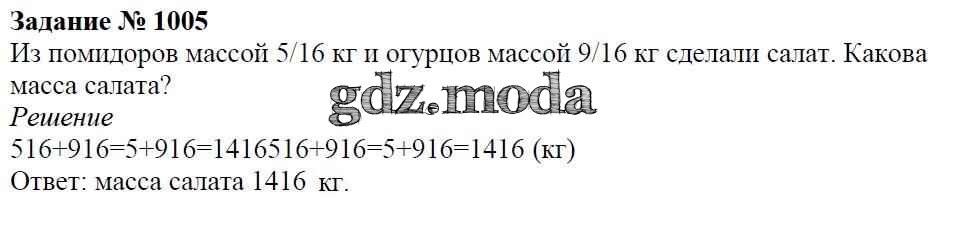 ОТВЕТ на задание № 1005 Учебник по Математике 5 класс Виленкин