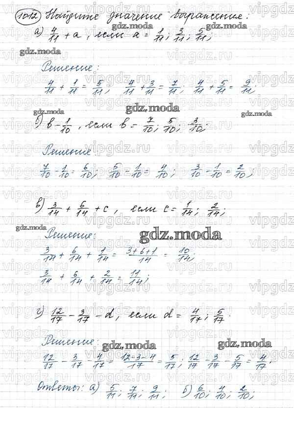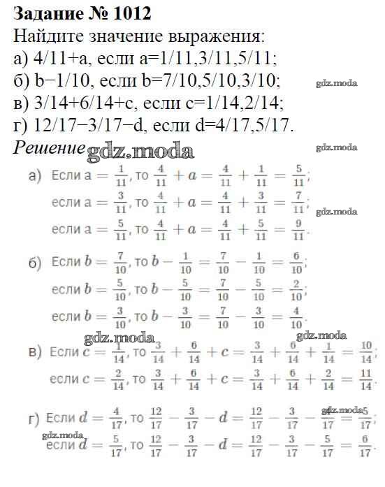 ОТВЕТ на задание № 1012 Учебник по Математике 5 класс Виленкин