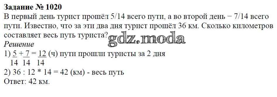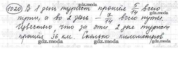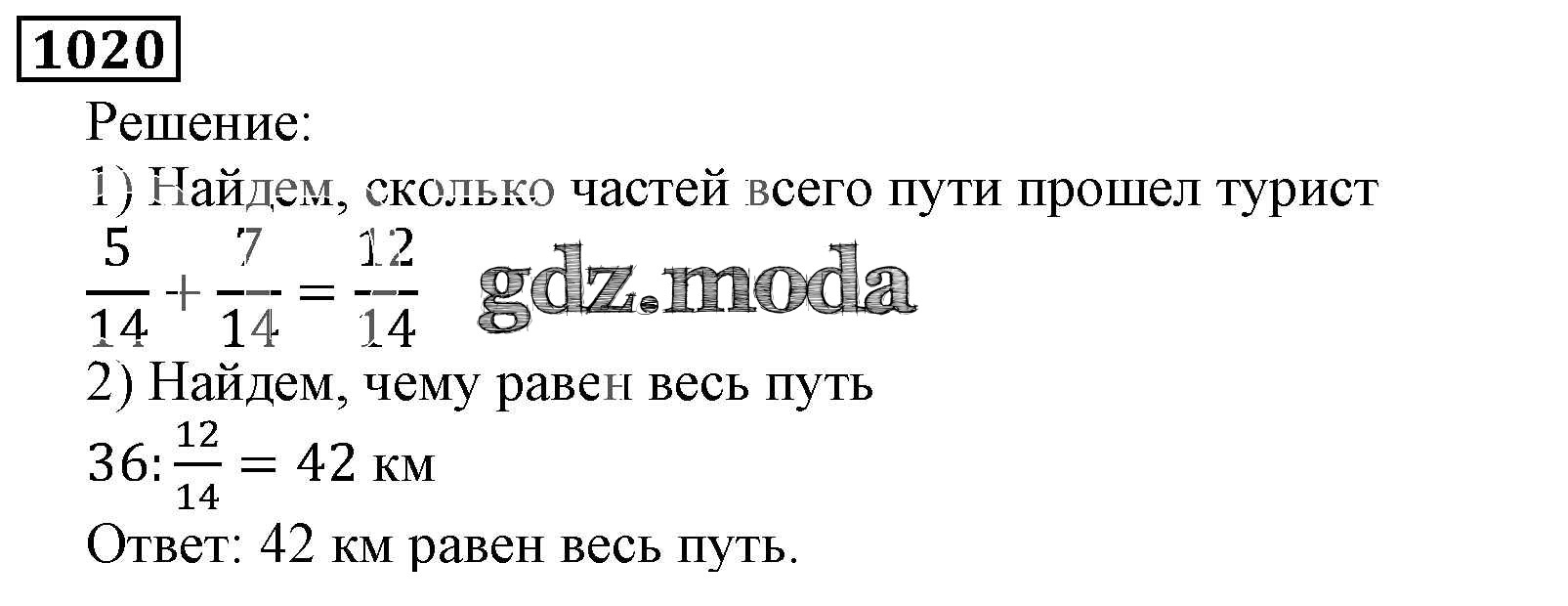 ОТВЕТ на задание № 1020 Учебник по Математике 5 класс Виленкин