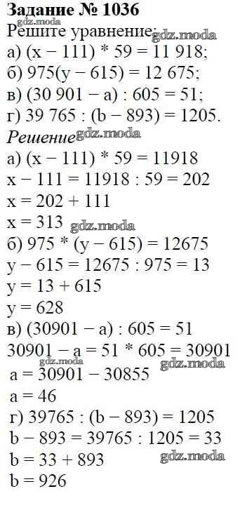 ОТВЕТ на задание № 1036 Учебник по Математике 5 класс Виленкин