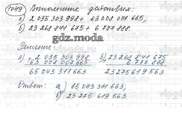 ОТВЕТ на задание № 1049 Учебник по Математике 5 класс Виленкин