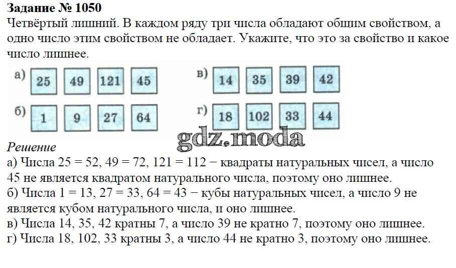 ОТВЕТ на задание № 1050 Учебник по Математике 5 класс Виленкин