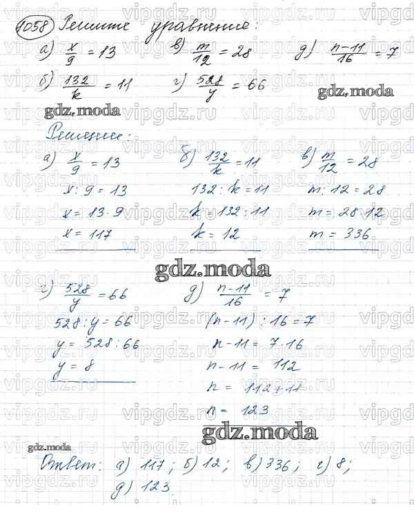 ОТВЕТ на задание № 1058 Учебник по Математике 5 класс Виленкин