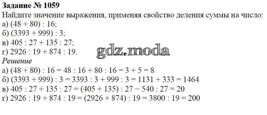 ОТВЕТ на задание № 1059 Учебник по Математике 5 класс Виленкин