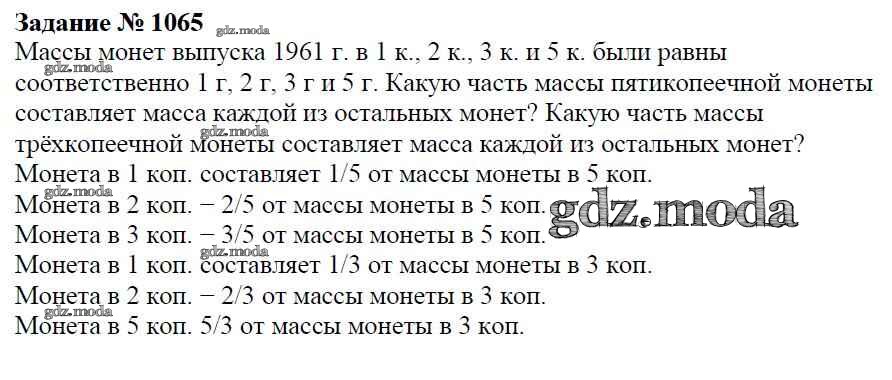 ОТВЕТ на задание № 1065 Учебник по Математике 5 класс Виленкин