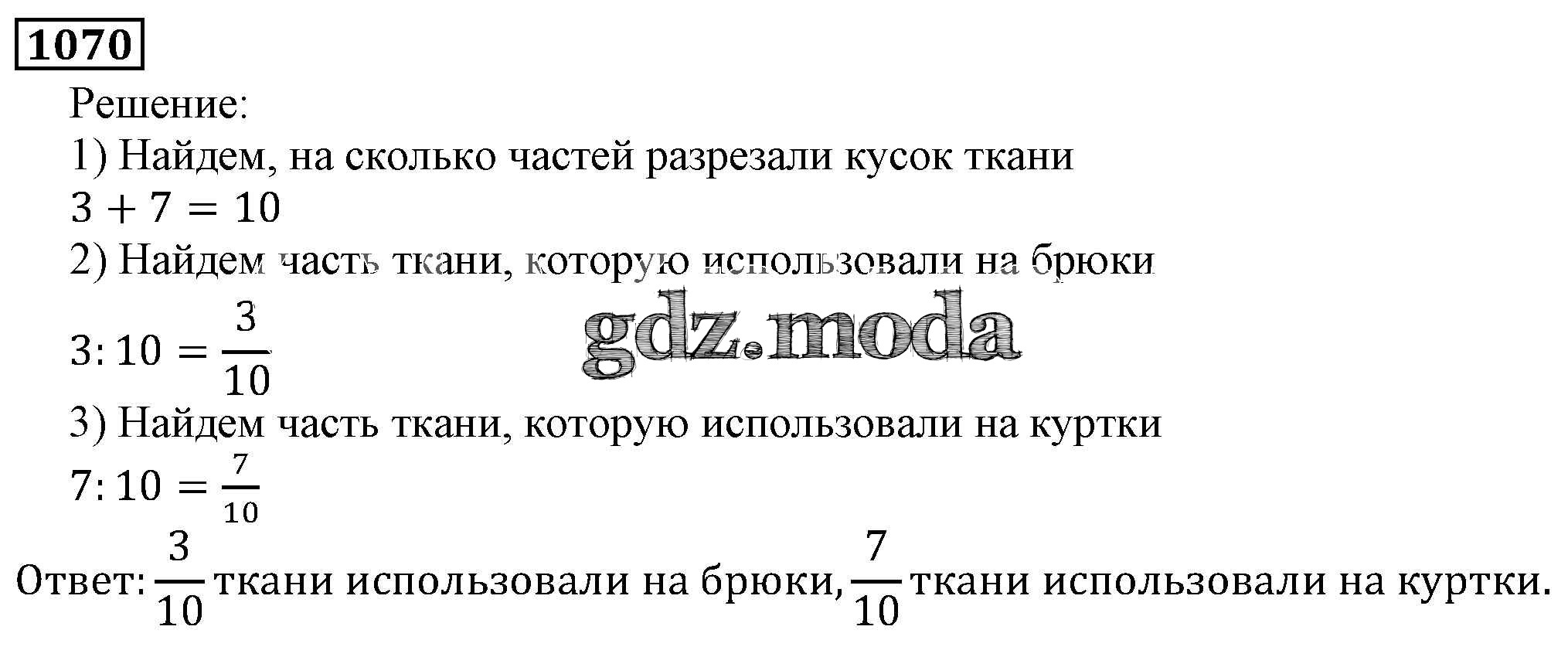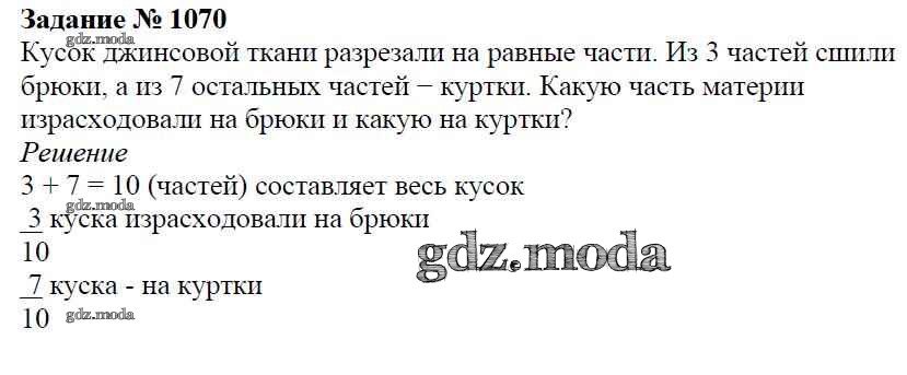 ОТВЕТ на задание № 1070 Учебник по Математике 5 класс Виленкин