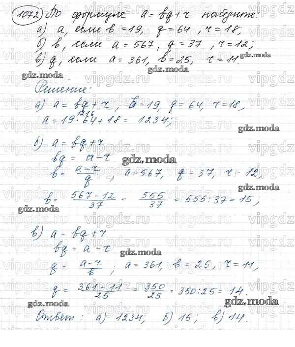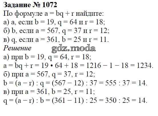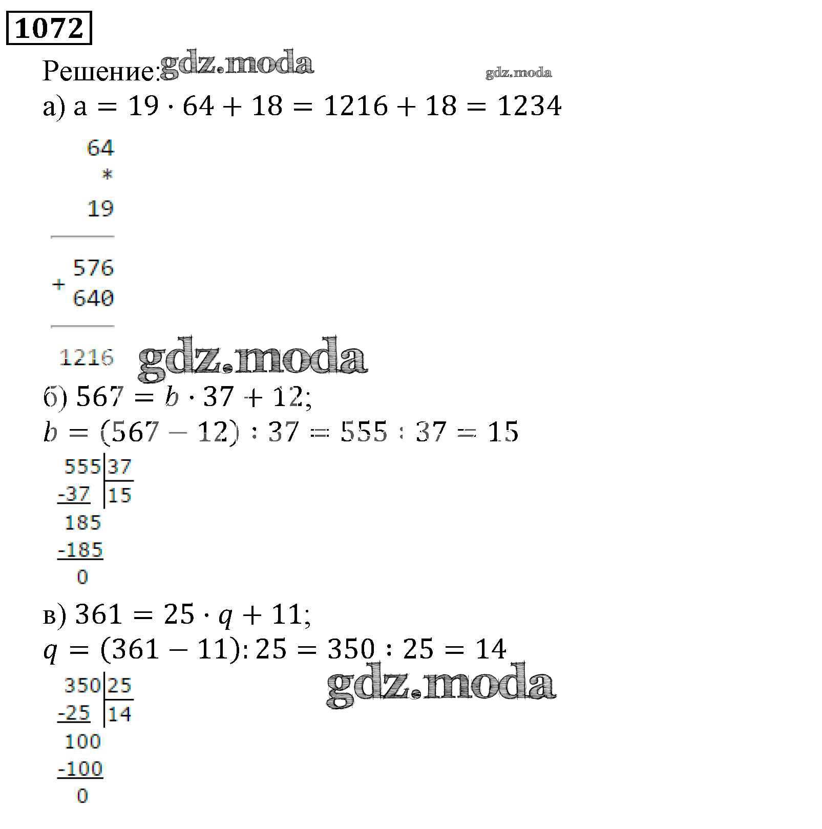 ОТВЕТ на задание № 1072 Учебник по Математике 5 класс Виленкин