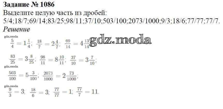 ОТВЕТ на задание № 1086 Учебник по Математике 5 класс Виленкин