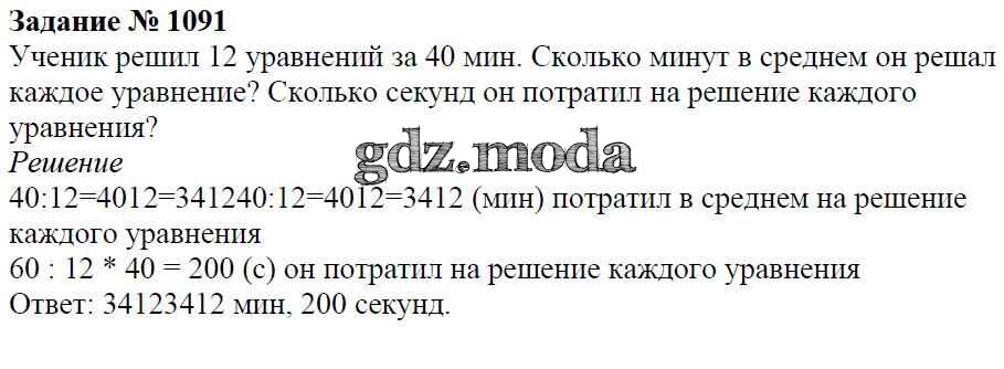 ОТВЕТ на задание № 1091 Учебник по Математике 5 класс Виленкин