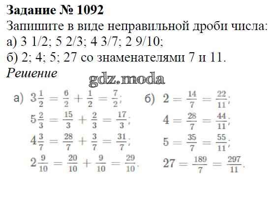 ОТВЕТ на задание № 1092 Учебник по Математике 5 класс Виленкин